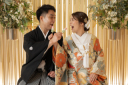 親御様へお手紙披露の後は、花束贈呈。親御様をイメージして選んでいただいた花束を渡し、親御様と温かいハグを交わしていただきました!