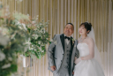 新郎様はピンクのタキシード!!桜色が新郎様を華やかに彩っていますね!