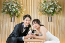 新郎の肩に寄り添うお座りショット。自然光が入って美しいです