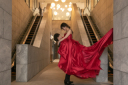 スタジオの白壁だからこそのシンプルなショット。衣装と表情が引き立ちます