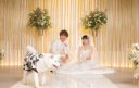 花嫁さまが頭につけるベールに入って撮る写真。新郎さまと二人で入った幻想的なフォト