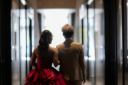 撮影後はゲストの皆様が待つ会食会場へ移動し、皆様にタキシード・ウエディングドレス姿のお披露目です!