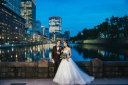 ロマンティックな瞬間のトワイライトタイム。おふたりのシルエットが浮かび上がります。