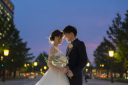 ロングベールをなびかせて、東京駅舎をバックに撮影♡