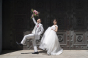 緑あふれるガーデンでの撮影は、自然光がやさしくふたりを包み込みます。開放感あふれる空間で、リラックスした表情の1枚◎