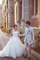 ソロショットも素敵ですね。ドレスの後ろ姿も撮影しますので、衣装選びの際には、トレーンの長さなども確認してみてくださいね!