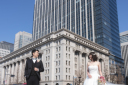 こちらは丸の内仲通りの横断歩道。新郎様が手をひいたり、ドレスのトレーンを持って歩くシーンを希望の方はこの横断歩道がオススメです!