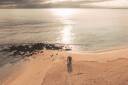 いよいよ青くキラキラと輝くビーチへ 遠くから見つめ合うおふたり