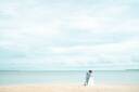 ドローン撮影からご紹介します。透き通るような海と、佇むおふたりを