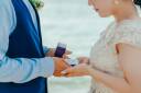 ドレスチェンジを行なったご新婦様 海、空、衣装と青に囲まれて爽やかに