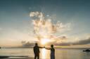 水平線を眺めるお二人のバックショット♪南国の潮風にふかれる優しい時間。よりそい合う姿から幸せが溢れます♡
