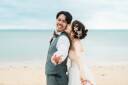 ビーチでの撮影から撮影がスタート!ビーチを見つめるおふたりの後ろ姿から。