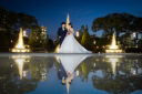 東京駅舎の美しい夜景をバックに、LEDを巻き付けたブーケが幻想的に輝いていますね。