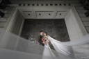 東京駅舎をバックに、夜のスポットライトに照らされながらまるでダンスをしているかのようなお二人の姿がとても素敵です!!