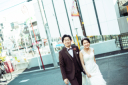 明治安田生命の歴史ある建物をバックに、風に舞うロングベールが印象的なお二人♥ベールがふわりと広がるたびに躍動感が溢れお二人の幸せな未来を予感させるようですね!
