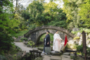 ロングベールが美しいリフレクションショット。鏡に反射したようなこのショット、1枚無料です♪水面に映っているわけではなく、カメラマンが加工を施しているんですよ♡