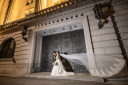 撮影スタートは和田倉噴水公園から。ライトアップされた噴水が幻想的に輝き、お二人の特別な瞬間を美しく彩っていますね!!