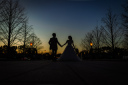 街灯の柔らかな光に包まれたお二人の姿が、とてもロマンチックですね。ライティング技術を駆使した光と影のバランスが絶妙で、まるで映画のワンシーンのような仕上がりに。