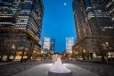 明治安田生命の前をおしゃれにお散歩。クラシックな建物にスタイリッシュなドレス姿がよく映えて、まるで雑誌の1ページみたいですね。自然体なふたりがすごく素敵!
