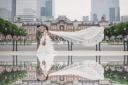 東京駅の灯りと水面に映るお二人の姿が幻想的ですね。なびくロングベールと反射がシンメトリーを描き非日常感あふれるロケーション撮影ならではの一枚になりました♪