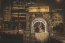 新郎様の背中にそっと寄り添いながら振り向く新婦様の笑顔が素敵♡ライトアップされた東京駅の前で、これから始まるふたりの未来がキラキラして見えるね。