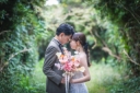 後ろからそっと手を重ねる新郎様に包まれ、新婦様の穏やかな表情が印象的です。ブーケの彩りと柔らかな光が全体に寄り添い、写真に温もりを添えますよね。