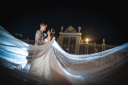 手を繋いでこちらを向いてくださったとき、ドレスの長いトレーンが広場にきれいに広がっていましたよね。東京駅と高層ビルのコントラストが壮観な一枚でしたね。
