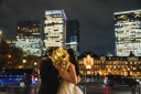 抱き合ってレインボーブリッジを背にしたお二人様、夜のやわらかさが出てましたよね。うろこ雲の青い空とライトポールの並び、お二人様をきれいに包んでましたよね♪
