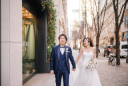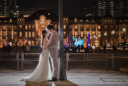 すっかり暗くなった東京駅前でのお写真。お二人とも素敵です☆
