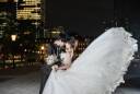 まだ少し明るい時間から撮影スタート!まだ明るさの残る空とドレスの裾がダイナミックになびく印象的なお写真です