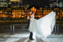東京駅舎を背景での撮影。ライトアップされ昼間とは雰囲気の違う撮影スポット!