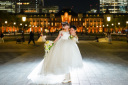 東京駅での撮影。ご新郎様がブーケを背中に隠し持ってこれからプロポーズをするようなイメージで。