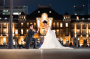 東京駅前でお二人並んでのポーズは1枚は記念に残したい写真ですね◎