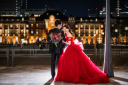 東京駅のオシャレな街灯で撮影しました。ぎゅっとして見つめ合う素敵なシーンです◎