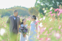 新婦様のソロショット撮影。青空とコスモスがより一層、新婦様を魅力的に演出してくれました。