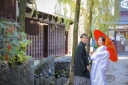 紅葉スポットにて、お二人のツーショット撮影。自然体な笑顔が印象的でした。