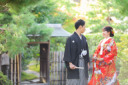 庭園内の新緑・お茶室・縁側・そして和装姿のお二人。ロケーション場所と新郎新婦様との一体感を表現しつつ、写真全体の構図バランスを意識しながら撮影を行いました。