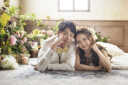韓国フォトでも人 気の寝ころびショット。そっとおふたりを包み合う手がぬくもりを一層感じさせてくれますね。
