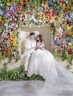 最も映える「フラワーウォール」でソロショット!そっと頬に手を当てた新婦様が愛らしい♥