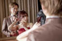 それぞれ遠くを見つめるショット。同じ景色を共有しながら、それぞれの想いを抱くような印象的な一枚に。