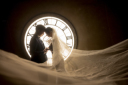 大きな時計の前でそっと優しく手を取り合ってエスコートショット。この幸せな瞬間も一緒に刻んで。