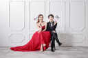 重厚感のある書斎を背景に、気品あふれるふたりの姿。静けさの中に、確かな絆が感じられます。