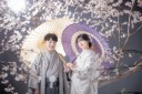 落ち着いたトーンの背景に、凛と立つおふたり。クールな雰囲気の中に、確かな愛情が感じられる一枚です。