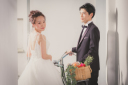 棚に座ってオシャレに。韓国風ウェディングならではですよね!