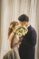 まるで扉から風が吹いたようになびくベールと、差し込む光がとてもマッチしています。
