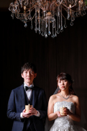 新郎新婦様の素敵な表情が撮影されています。バルーンを同じ方向に持っているのも良いですね。