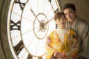 和装で撮りたい挨拶ショット。お世話になった皆さまを想い描いて感謝の気持ちを表現されるおふたりの笑顔がキュート!