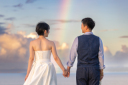 Keikoカメラマンのそんなスピリットが詰まったカット。サンセットの夕陽とお二人の影のコントラストが眩い写真です。