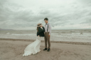 海でのロケーション撮影♪旦那様の蝶ネクタイと新婦様の可愛い雰囲気がマッチし、ほっこりする一枚です。