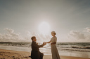 お二人でブーケを持って♪波打ち際で絵になる1枚に♪